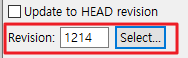 3. 팝업으로 열린 메뉴화면(Update Resources)에서 Update to HEAD revision 을 체크 해제한다.